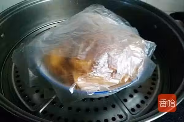 13.在把鍋蓋拿出,取出保鮮膜,蓋好蓋在蒸20分鐘即可,