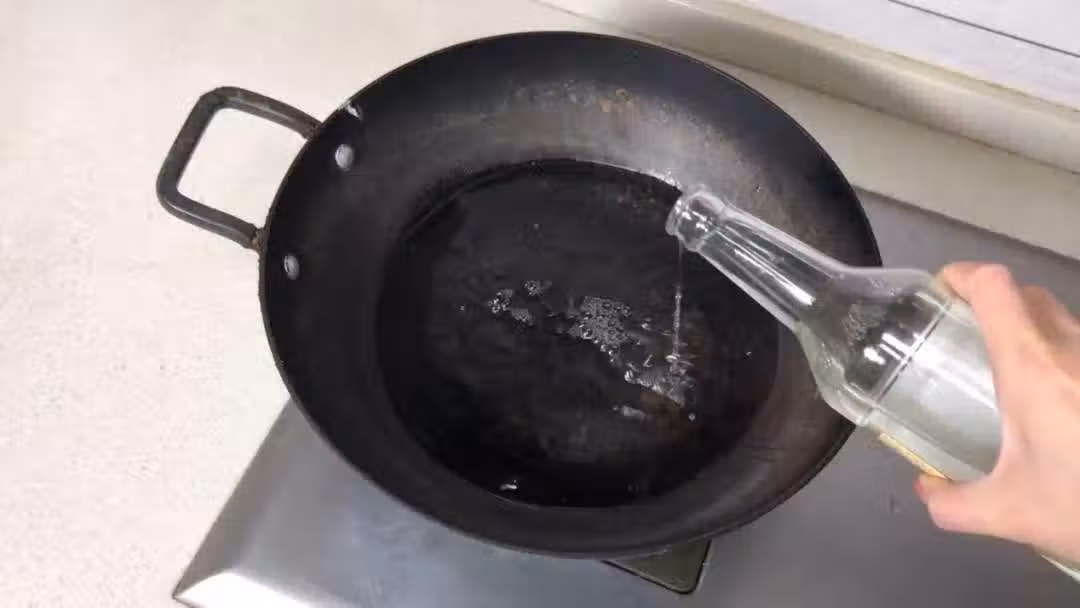 3、撒入適量的食用堿。食用堿具有強大的吸附雜質的能力,靜置5分鐘後,我們再次用鋼絲球擦拭鐵鍋。這個步驟有助於吸附殘留的雜質,使鐵鍋更加干凈。