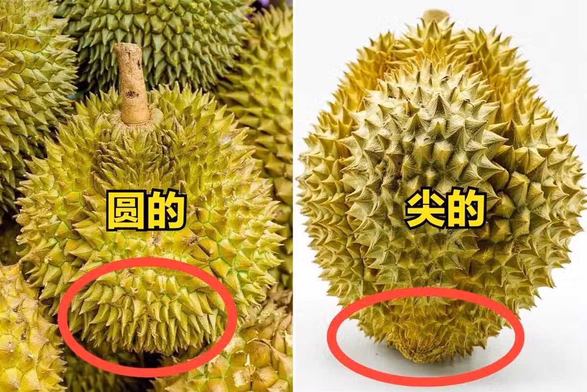 買榴槤時,記得區分「圓的」和「尖的」,差別挺大,弄懂再買才有底