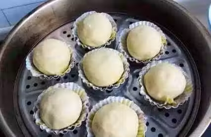 在整盤底部放一塊蒸布並塗抹一層油,防止湯圓粘鍋破皮,將湯圓一一擺放整齊,放入蒸鍋內,蒸15分鐘左右直至蒸熟,取出整塊蒸布直接擺放在盤子裡,吃的時候夾湯圓還不會粘在布上。這種做法湯圓柔軟香醇,還不帶湯水,更利於攜帶。