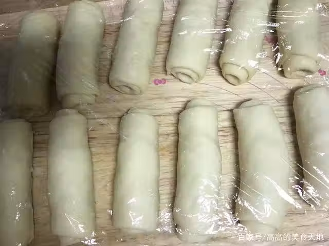 14、在卷椰蓉餡料的麵糰上,用鋒利的刀將其劃開一下,注意兩端不要劃斷,只需在中間部分,深一點劃開即可,