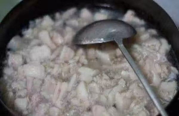 購買豬板油時,要略微濕潤,將其切成小片,用少量鹽擦洗,用清水清洗;過涼後,放入適量的涼水,把板油姜放入,用大火燒開,一邊煮一邊煮,直到有蒸汽升起時,再放2湯匙糖,再用大火燒開;
