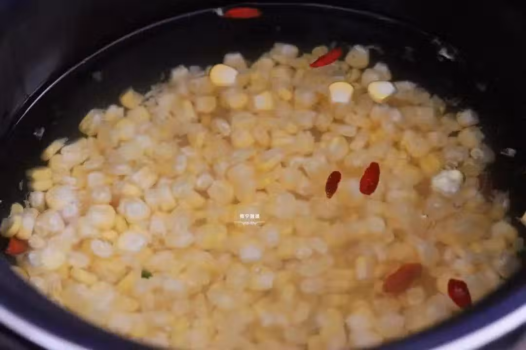 4.電飯鍋選擇白米粥的模式,接下來就不用管了,等待30分鐘。甜玉米蒸的話一般15分鐘就行,但是要煮玉米糖水需要30分鐘。
