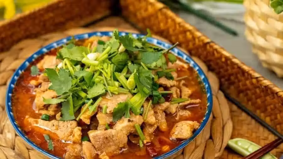 這道水煮肉片結合了嫩、滑、鮮、香、辣、麻多種口感,豆芽吃起來清脆爽口,豬肉鮮嫩多汁。