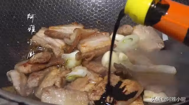 3.肉燉得大概八分熟了加入白菜幫,翻炒幾下,讓白菜葉都粘上湯汁。