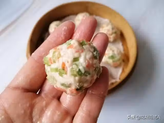 第七步:搓好的胡蘿蔔蔬菜丸子放到鍋里,水開之後蒸15分鐘。