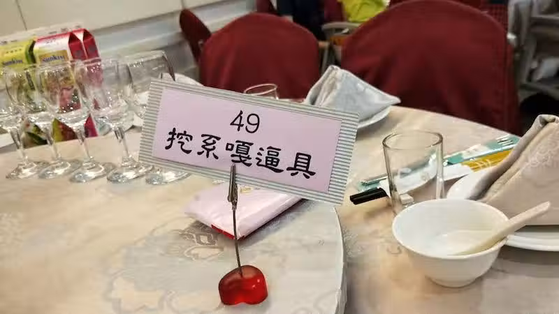 他吃喜酒發現桌卡寫著「挖係嘎逼具」 一轉頭「發現隔壁桌更狂」笑歪:還好不是坐那