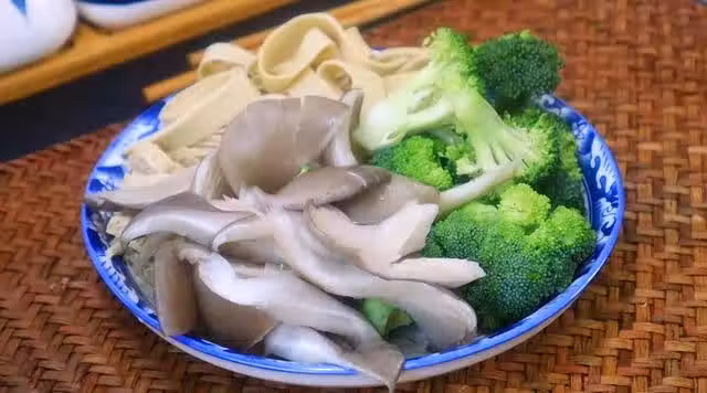 4、重新燒水,鍋里水開後先下難熟的蔬菜,煮好後再下毛肚,,燙個幾秒鐘後把所有蔬菜撈出來放入盆中。