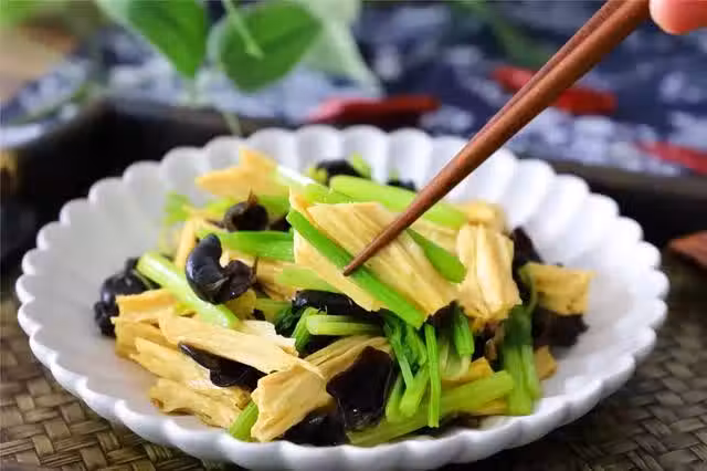 其實,飯店泡發腐竹他們都會用一種既快速又方便的方法,一般30分鐘就能泡好好,而且做出來的腐竹嫩滑韌勁無硬芯,方法分享給大家:先把腐竹掰成小段,能放入盆中,倒入40度左右的溫水,水量要沒過腐竹,然後加入一勺食鹽,攪拌至鹽融化,上面扣上一個盆,不要讓熱量散得太快了,按這種方法,一般泡30分鐘左右就能泡開,而且筋道還沒有硬芯,因為食用鹽具有加快腐竹對水分吸收的作用,且用溫水更能夠促進腐竹的泡發,裡外都被浸泡透了,而且時間還會大大縮短,這樣泡發出來的腐竹做出來的口感也好,嫩滑有韌勁,還沒硬芯。