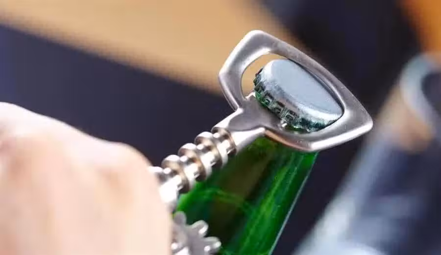 第一,如果我們在買啤酒的時候想要打開它,但沒有開瓶器,我們可以直接用兩瓶啤酒對著接著我們可以選擇其中的一瓶放在桌面上,再拿著另一瓶傾斜著向另一瓶的瓶蓋上方,這樣就可以將瓶帶邊緣凸起的部分抵在另一瓶瓶蓋的上面了。