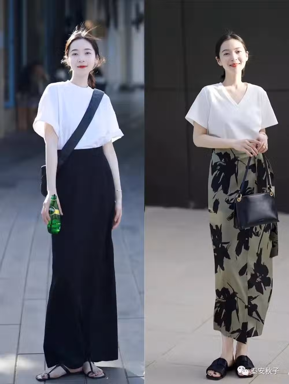 不妨試試及至腳踝到小腿長度的中長款半身裙吧。我們可以用合適的剪裁,對不完美的腿型進行巧妙修飾。再用「塞衣角」的穿搭手法,打造出高挑的腰線位置,顯瘦、又顯高。