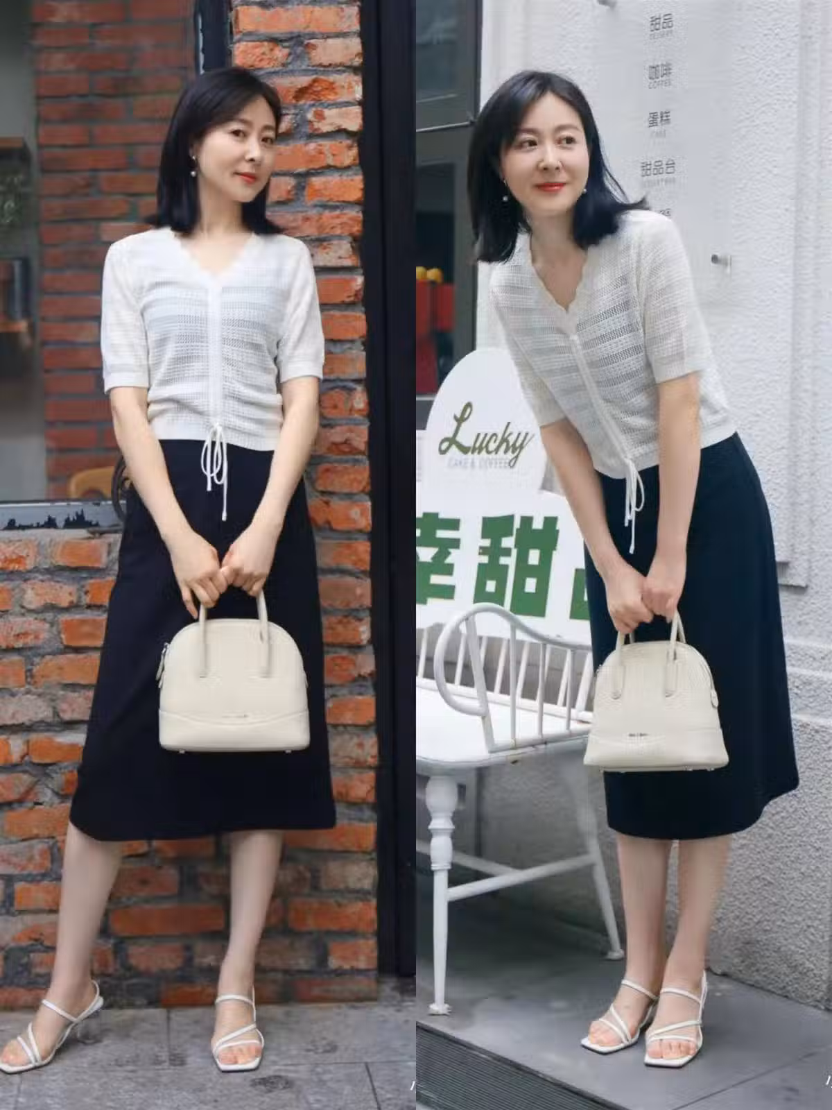 一來可以利用它束縛肉肉,品味勾勒出身形;二來可以保證單品上身不會打壓身高,不管你是165的身高還是158的身高,修身單品上身,都能讓你實際和肉眼看上去一模一樣,即使發福也不會有人覺得你矮。