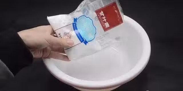 第二步,把需要清洗的抹布放進臉盆里並且倒入熱水。水位需要沒過整條抹布。之所以選擇用熱水,是因為熱水高溫不僅能殺死抹布上面的細菌,而且食用堿、洗潔精以及食鹽在熱水環境中清潔效果更好。接著,讓抹布在熱水裡浸泡5分鐘。