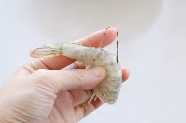2.剝掉蝦殼洗凈後瀝干水分放到碗中,調入料酒、一點點鹽和白鬍椒粉,拌勻腌制十分鐘。
