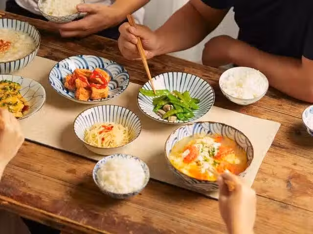 每頓飯只吃七分飽,從來都不過量進食,而且特別注重營養物質均衡的搭配,每頓飯的餐桌上都有大大小小的碗碟,這樣可以更科學地攝入營養物質,幫助保持健康。