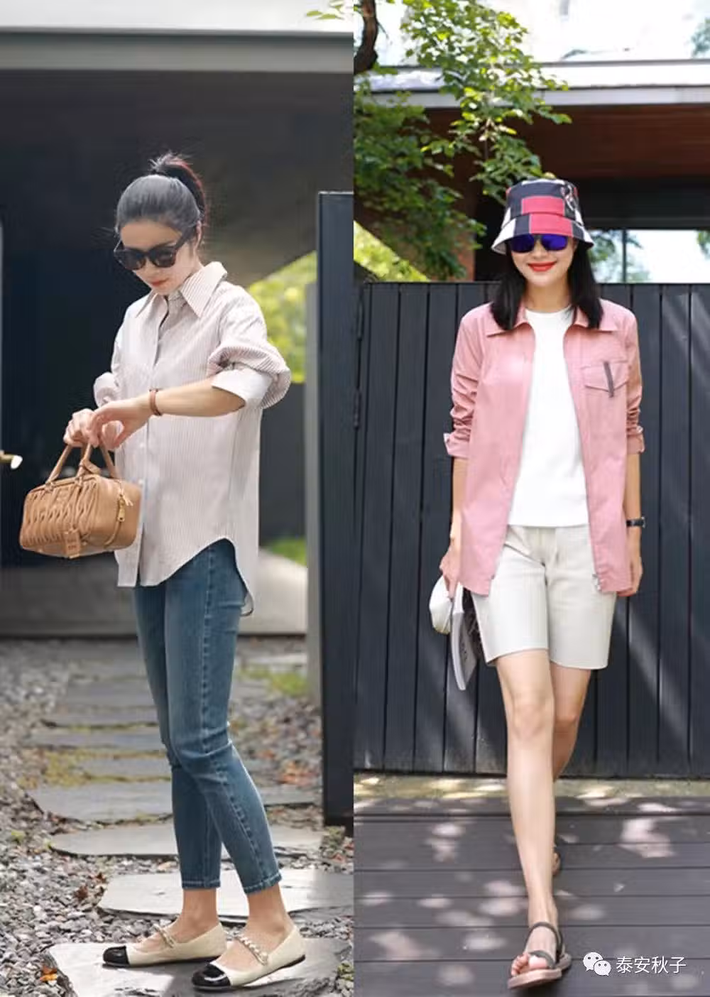 首先推薦大齡女人用針織類單品疊穿襯衫,將襯衫的門襟敞開,露出裡面的白色小衫,既能夠加強層次感,也能藉助小花帽,為簡單造型注入俏皮與甜美氣息。