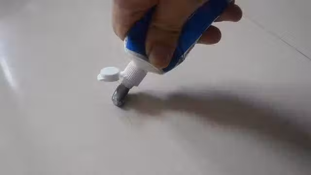 當我們需要修復瓷磚上面劃痕的時候,先往瓷磚上面有劃痕的地方擠上一些牙膏。牙膏含有研磨劑可以修補瓷磚上面的劃痕。