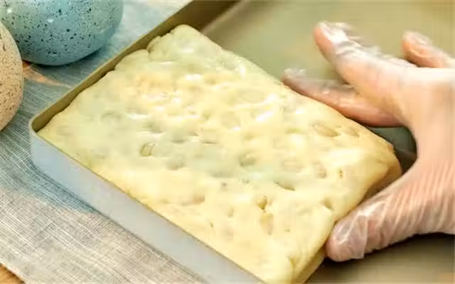step9:用擀麵杖將表面擀平整,配合手調整形狀和邊緣,盡量成為規整的正方形或者長方形,方便後期切割減少浪費。牛軋糖冷卻後會變硬,因此要趁還有溫度時儘快定型。