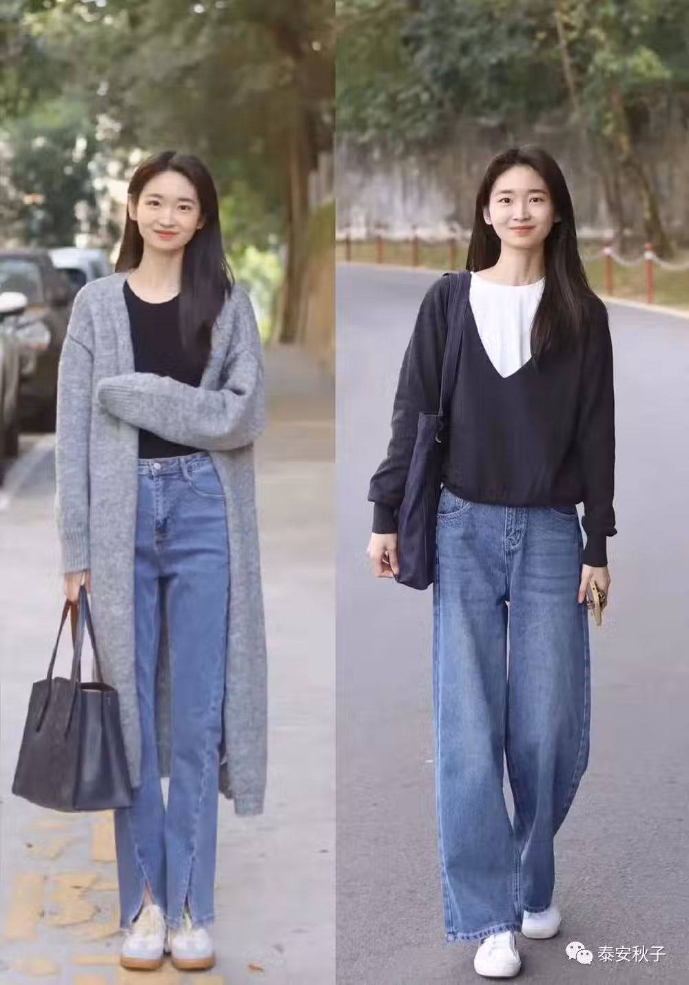 在牛仔褲的褲腳處,剪開一個小叉,不僅能幫你修飾腿型,又能達到修身、顯瘦又顯高的時尚效果。