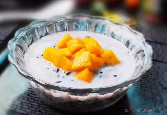 7. 把芒果粒放在上面即可。