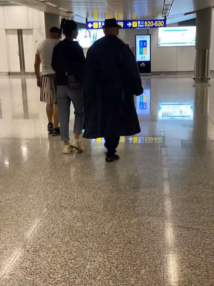 這位男網友日前在臉書社團「爆廢公社二館」貼文,表示自己準備從香港機場飛回台灣,「想說這大叔怎麼穿個浴衣來坐飛機?」只見照片中原PO搭著手扶梯向下,前方站著一位戴著深色紳士帽的男子,身上穿著毛絨絨的灰色外套,腰間還有綁帶,乍看很像洗完澡穿著浴袍...