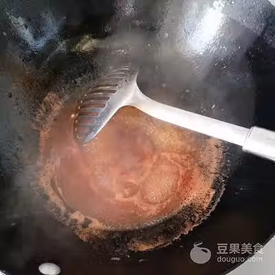 10、加入半小碗清水、3湯匙番茄醬,2湯匙白糖,1小勺鹽、1/2湯匙生抽攪拌均勻,燒開後煮約半分鐘。