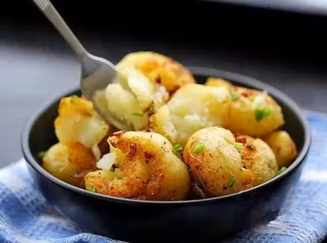 5. 關火, 裝盤之前把土豆留在鍋里約兩分鐘, 再裝入盤中。