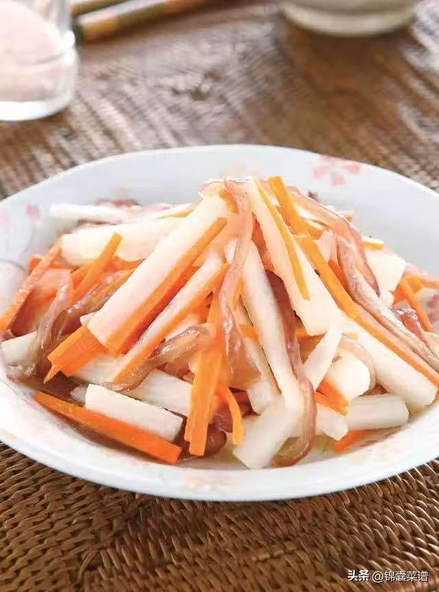山藥 200 克,水發黑木耳 50 克,胡蘿蔔 60 克,薑絲 10 克
