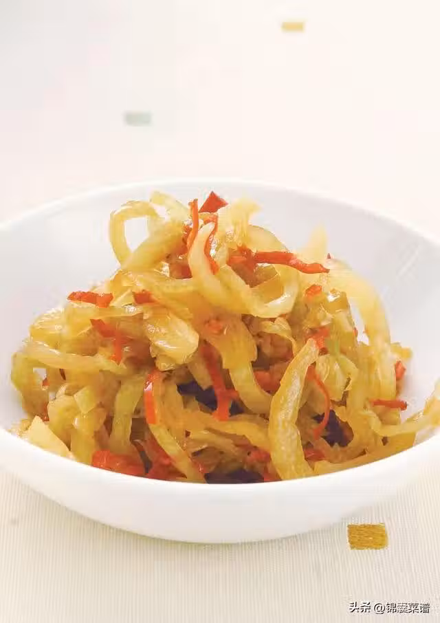 2 熱鍋,倒入少許植物油,以小火爆香紅辣椒絲和薑末。