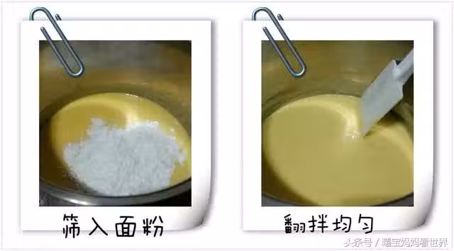 3:現在開始打發蛋白。蛋白中擠入幾滴檸檬汁,如果沒有的話可用白醋代替,4-5滴即可。將30克糖分兩次加入蛋白中打發至提起打蛋器出現彎曲的尖角就好。(用打蛋器將蛋白打出粗泡時加第一次糖,然後繼續打發至蛋白細緻無泡時加入第二次糖)