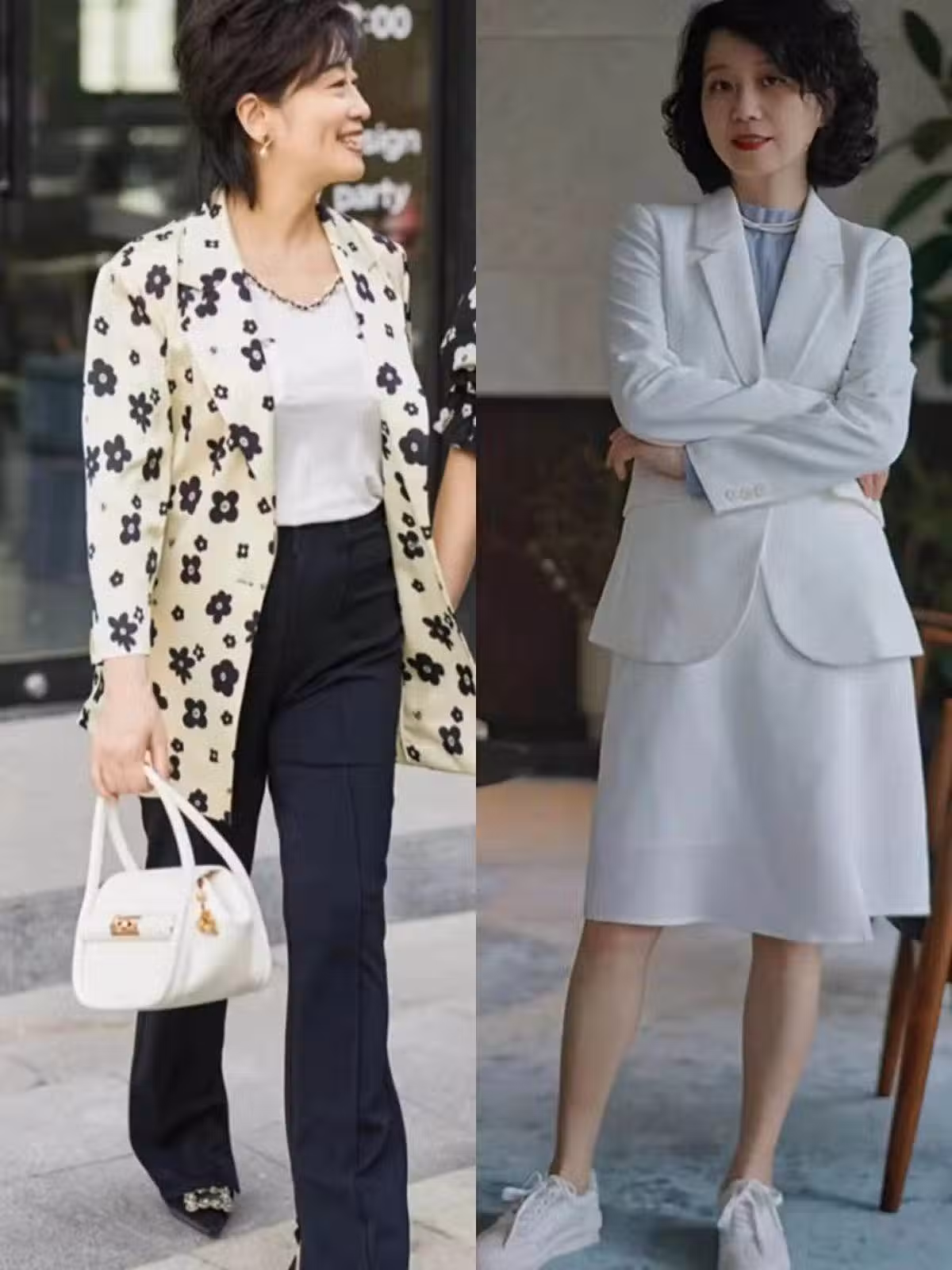 50歲女人不要穿各種蕾絲單品,更不要穿各種沒質感又容易起皺的服飾,面料高級且表面平整的單品更貼合你自身氣質。比如西裝、襯衫、西褲,這些服飾穿在身上非常簡約大方,顯得人更講究。