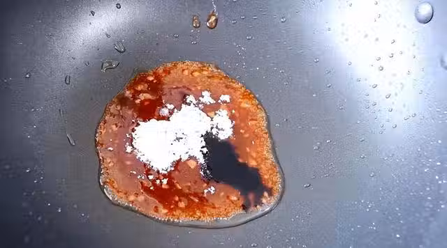 5、接著倒入一些清水,攪拌均勻,加入一些鹽調味,再淋入一些水澱粉,煮至濃稠;