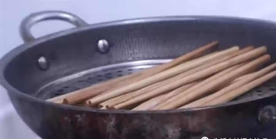 準備鍋清水,將筷子給它平鋪上去,然後開大火,利用高溫消毒殺菌,十分鐘就可以啦。