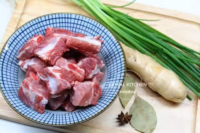 第二步:排骨清洗乾淨,然後放入清水中浸泡1個小時。(中途要換1次水,便於把排骨中的血水、雜質什麼的浸泡出來。)