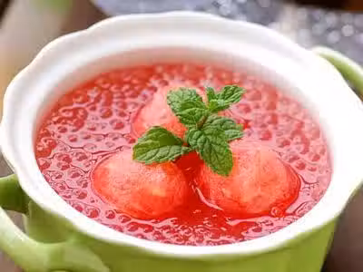 3. 將西米、椰汁和西瓜放器皿內,完工,也可以冰箱冰鎮以後吃。
