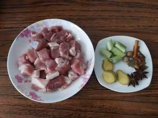 2.把切好的肉過水焯一下,涼水把肉放進鍋,大火燒開,等有髒的浮末上來,再煮一會撈出就行了,撈出的肉用清水沖乾淨,備用