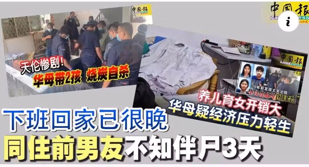 (吉隆坡8日訊)「華裔母親帶兒女燒炭自殺」案;女死者與前男友分手1年後,仍同住一個單位,可前男友下班晚上才回家,絲毫不曉得自己與3母子的遺體同屋了3天!