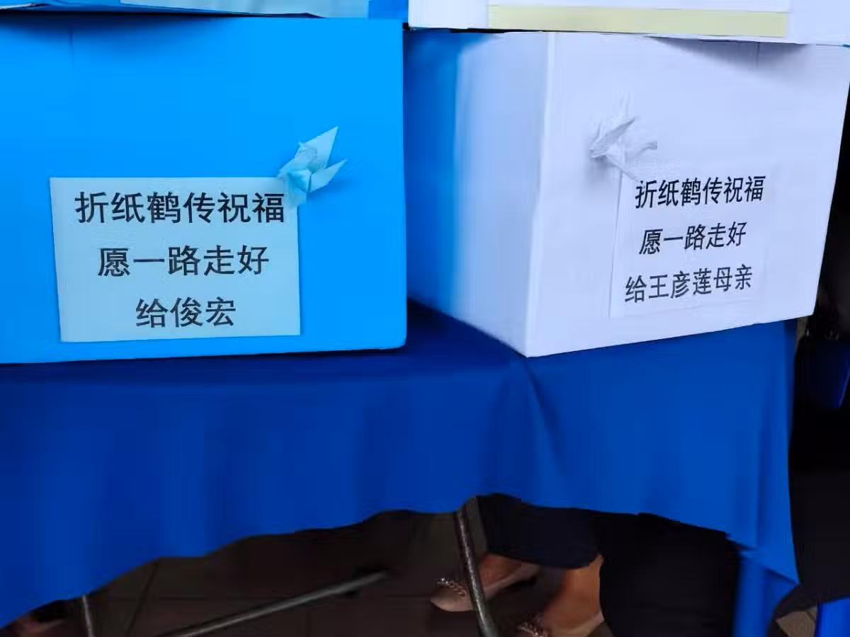他表示,校方與學生們也精心準備了紙鶴、書法、手工作品、卡片等作為紀念。其手工紙鶴也分成3種顏色分別送給3為死者。