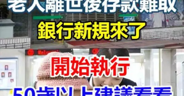 老人離世存款難取?銀行新規來了,50歲以上朋友建議來看看