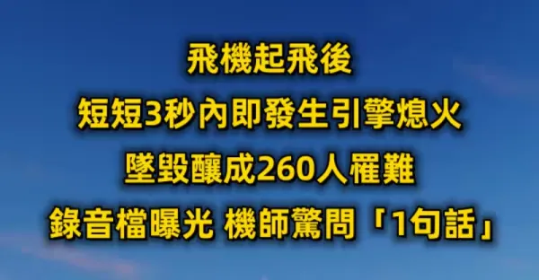 快訊/飛機起飛後短短3秒內即發生引擎熄火,墜毀釀成260人罹難,錄音檔曝光 機師驚問「1句話」