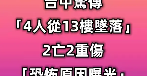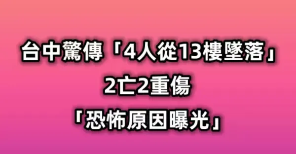 突發/台中驚傳「4人從13樓墜落」!2亡2重傷「恐怖原因曝光...」