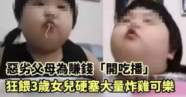 惡劣父母為賺錢「開吃播」狂餵3歲女兒 硬塞大量炸雞、可樂:體重飆到35公斤
