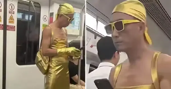 捷運上一位「金色弔帶裙大叔」超搶眼!捷運變秀場,不料仔細看去「眾人笑不出來了」