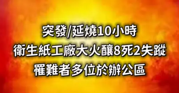 突發/延燒10小時 衛生紙工廠大火釀8死2失蹤 罹難者多位於辦公區