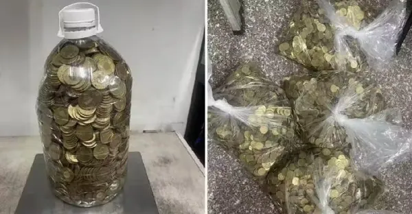 存了100公斤「50元硬幣」一共4大桶!打開全是「金光閃閃」,總額揭曉網友全跪了:沒半枚假的