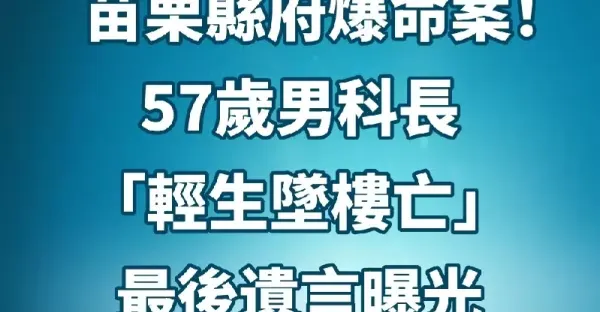 快訊/苗栗縣府爆命案!57歲男科長「輕生墜樓亡」...最後遺言曝光 #才上任2個月