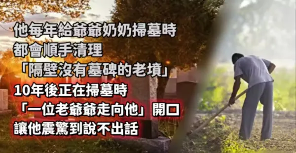 他每年給爺爺奶奶掃墓時,都會順手清理「隔壁沒有墓碑的老墳」10年後正在掃墓時「一位老爺爺走向他」開口讓他震驚到說不出話...