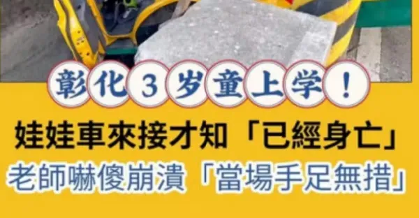 快訊/彰化3歲童上學!娃娃車來接才知「已經身亡」 老師嚇傻崩潰「當場手足無措」