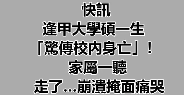 快訊/逢甲大學碩一生「驚傳校內身亡」!家屬一聽:走了…崩潰掩面痛哭