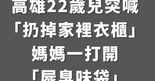 高雄22歲兒突喊「扔掉家裡衣櫃」,媽媽一打開「屍臭味袋」大義滅親報警
